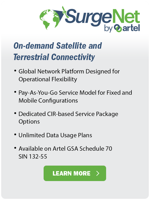 Artel was the very first industry partner in the U.S. Government’s Future COMSATCOM Services Acquisition (FCSA) program, and our expertise is available on the newly awarded CS3 Contract Vehicle, as well as GSA IT Schedule 70, SIN’s 132-54 for Transponded Capacity and 132-55 for Subscription Services. In addition, Artel is an active participant with the Advanced Technology International (ATI) Space Enterprise Consortium (SpEC) to develop and streamline the procurement of next-generation space technologies for the U.S. Government.